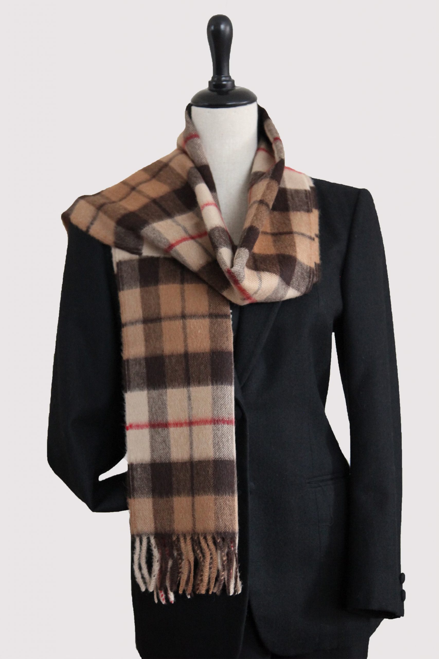 - Schottenkaro-Design: Das klassische Schottenkaro-Muster verleiht dem Schal einen Hauch von Tradition und Eleganz. Die warmen Brauntöne in Kombination mit den roten Streifen schaffen eine ansprechende Optik.