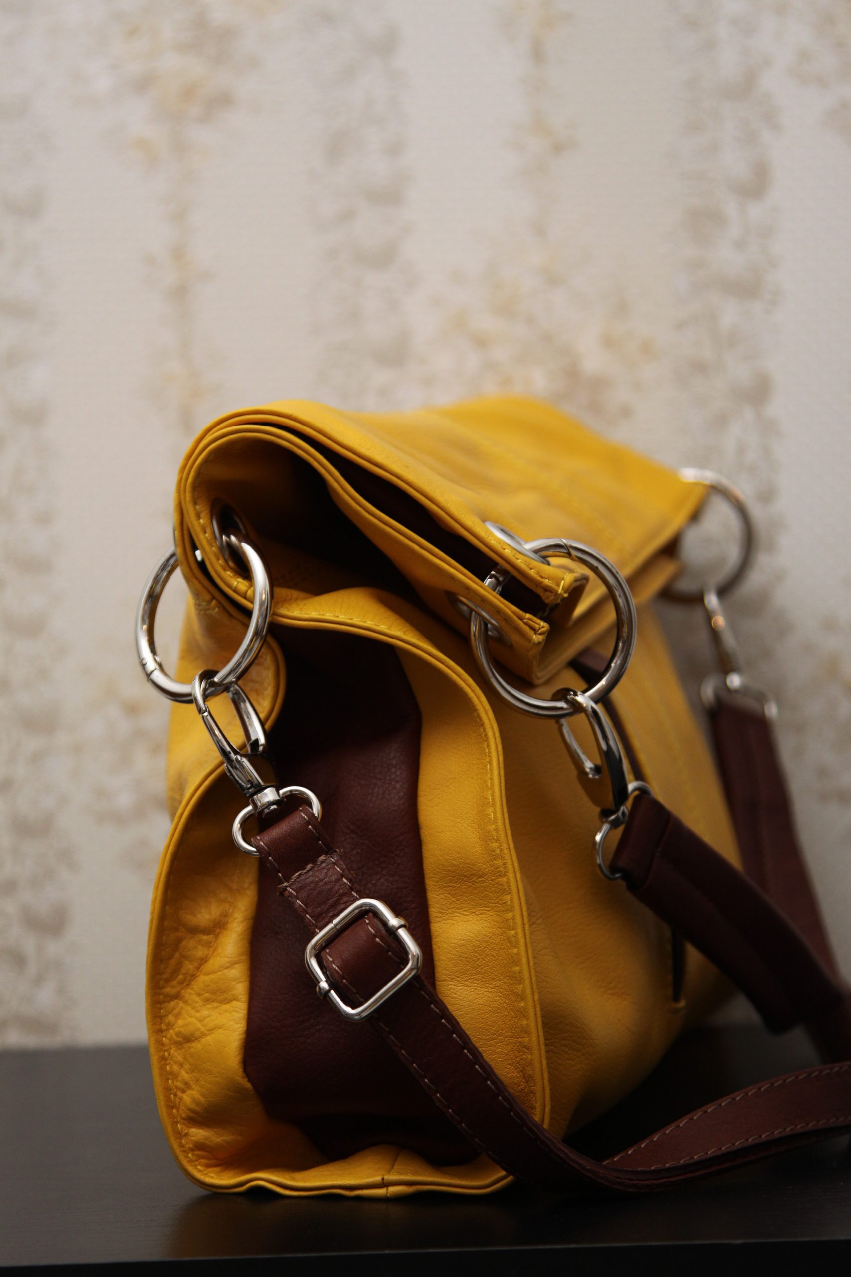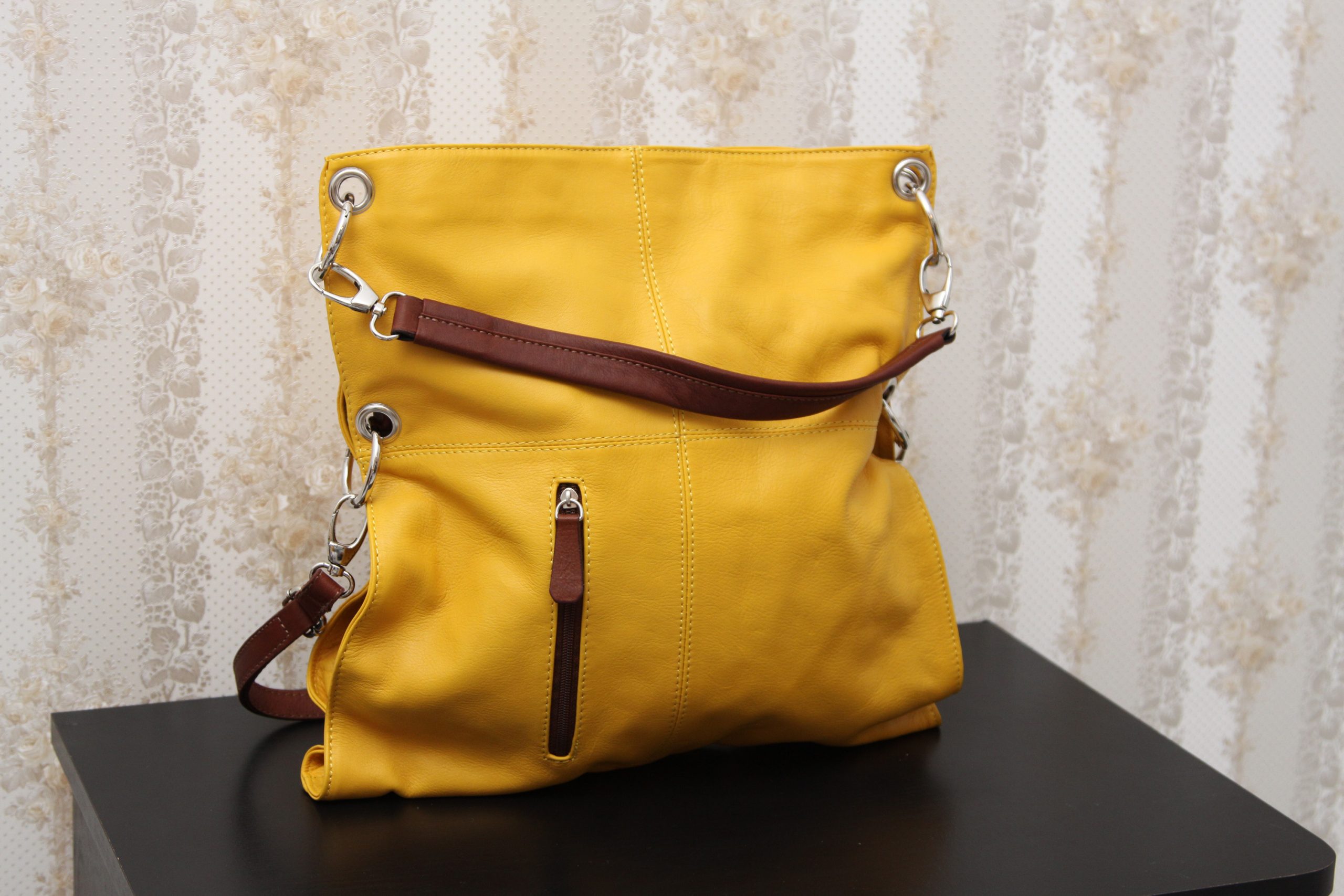 Zeitlos elegante Damen Echtleder Handtasche, gelb